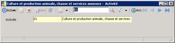 Le code permet d'identifier de manière unique une activité.Cette notion est reprise dans la fiche Société et dans la fiche Tiers. |