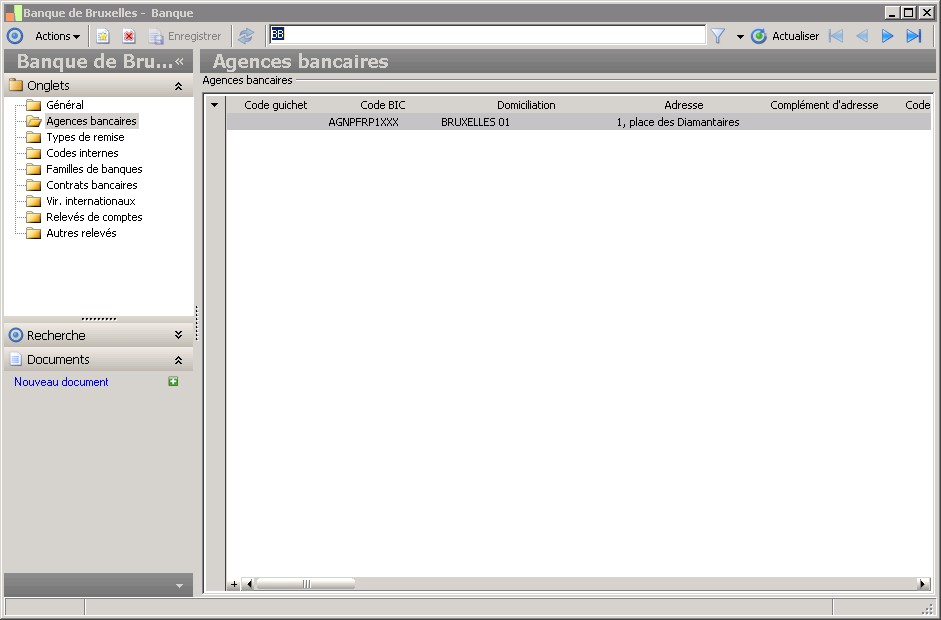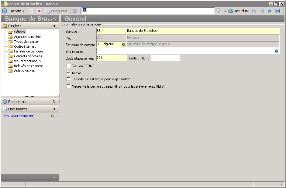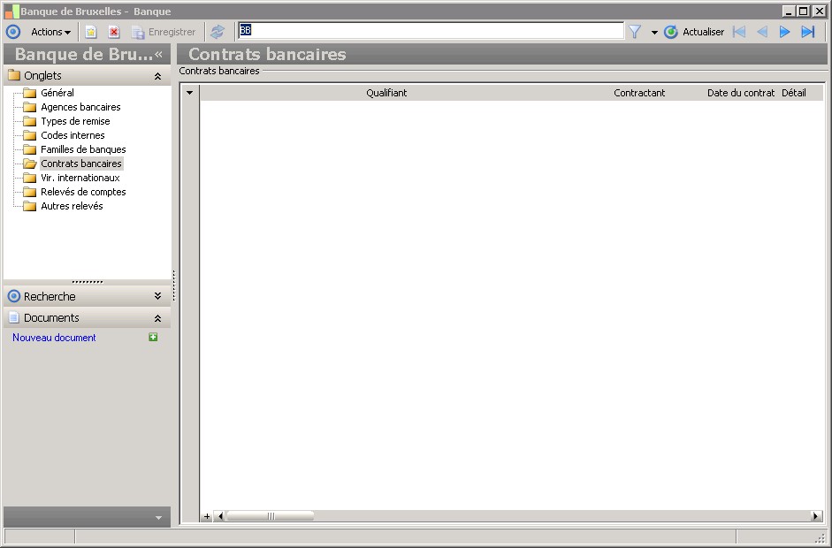 Cette classe regroupe les contrats bancaires établis avec les différentes banques des sociétés. |