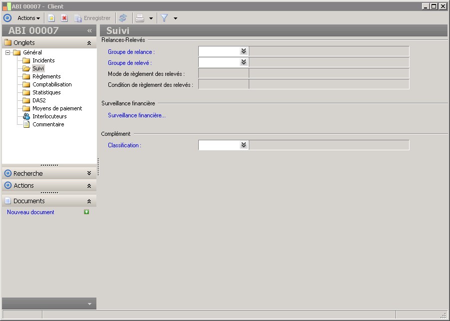 Le code d'un client ne doit pas comporter de caractère « joker » tel %, ? ou _.Cette restriction s'applique à toutes les fonctions dont les éléments sont repérés par un code. |