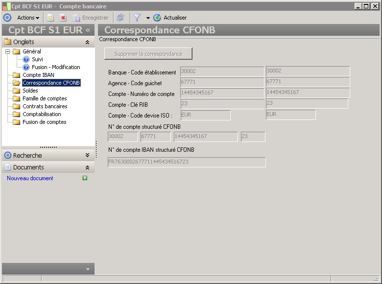 La clé RIB française permet de vérifier que le numéro de compte a été correctement saisi. Ce contrôle peut être désactivé dans la fiche agence bancaire. |