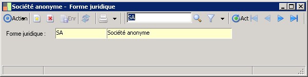 (Sage FRP 1000 Banque Paiement) Menu Banque Paiement > Paramètres > Paramètres > Forme juridique