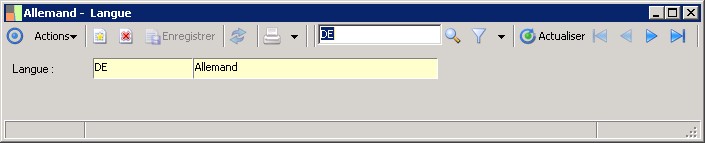 Le code permet d'identifier de manière unique une langue.Cette information est reprise dans la fiche Tiers. |