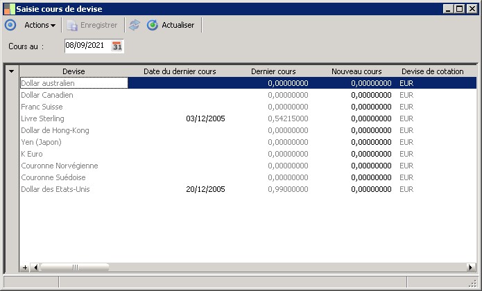 Cette zone permet de renseigner la date du cours de la devise. |