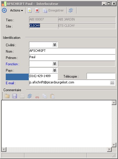 Cette zone permet de renseigner le numéro de télécopie de la personne. |