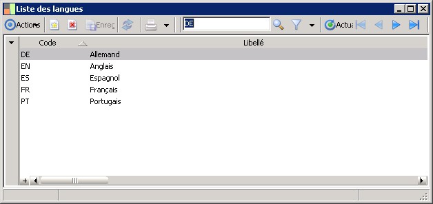 Cette fonction permet d'enregistrer les différentes langues parlées par les interlocuteurs du siège social de la société, des divers établissements et dépôts ainsi que des tiers.