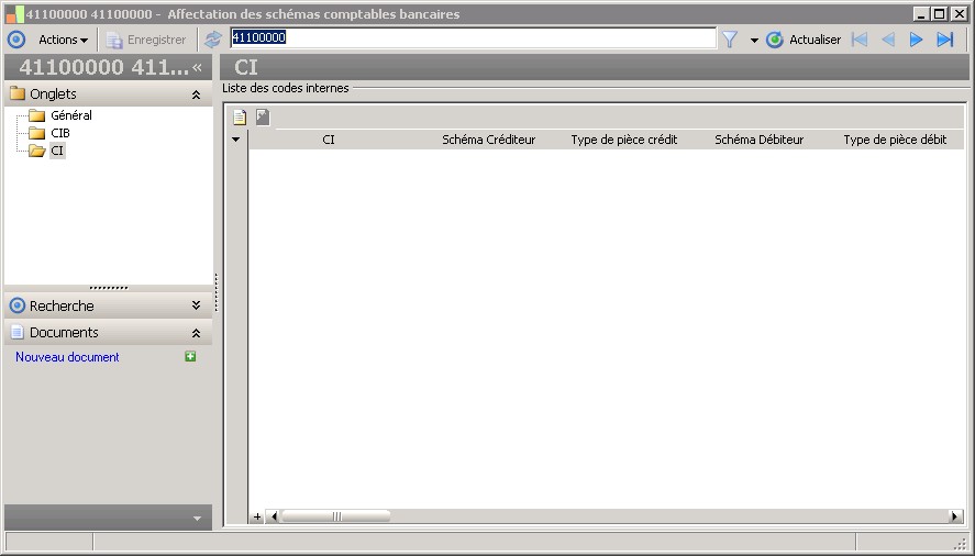 (Sage FRP 1000 Banque Paiement) Menu Banque Paiement > Paramètres > Comptabilisation > Affectation des schémas comptables bancaires
