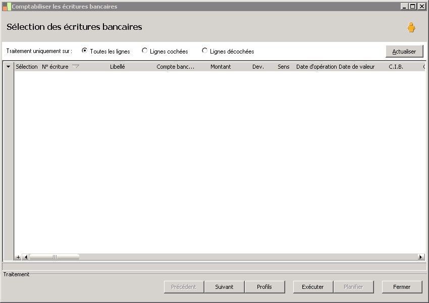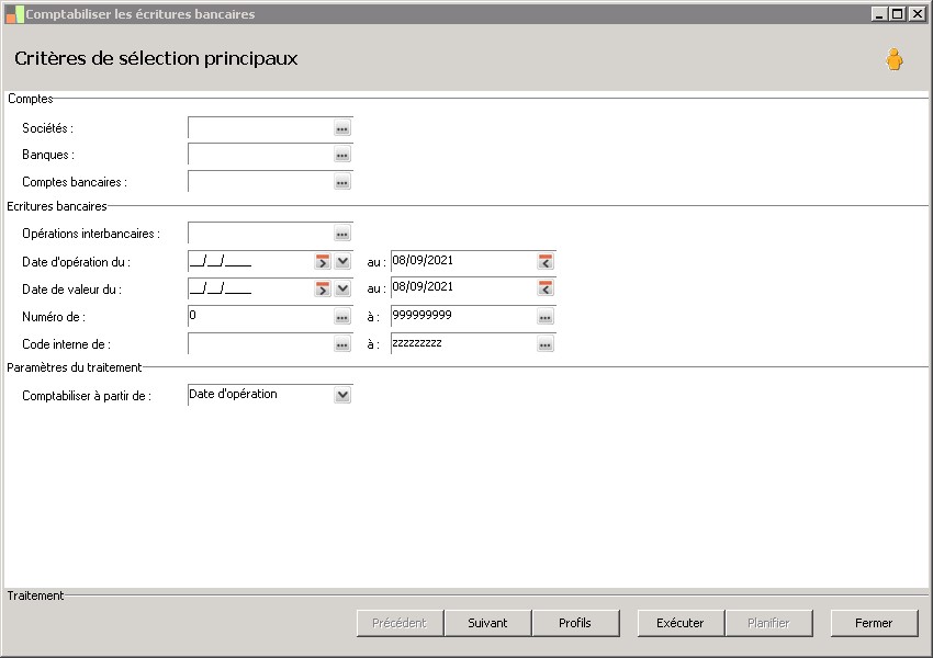 (Sage FRP 1000 Banque Paiement) Menu Banque Paiement > Comptabilisation > Comptabiliser les écritures bancaires