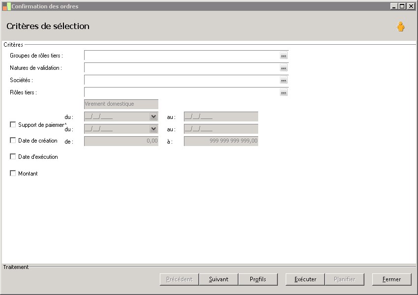 (Sage FRP 1000 Banque Paiement) Menu Banque Paiement > Ordres bancaires > Confirmation des ordres