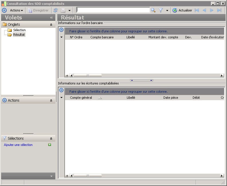 (Sage FRP 1000 Banque Paiement) Menu Banque Paiement > Comptabilisation > Consultation des SDD comptabilisés