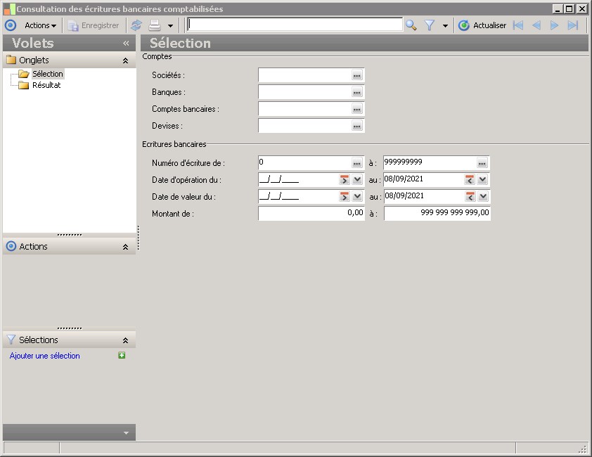 (Sage FRP 1000 Banque Paiement) Menu Banque Paiement > Comptabilisation > Consultation des écritures bancaires comptabilisées