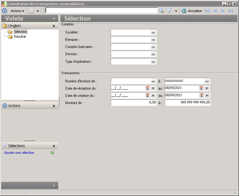 L'écran de l'onglet Sélection permet de définir des critères de recherches.
