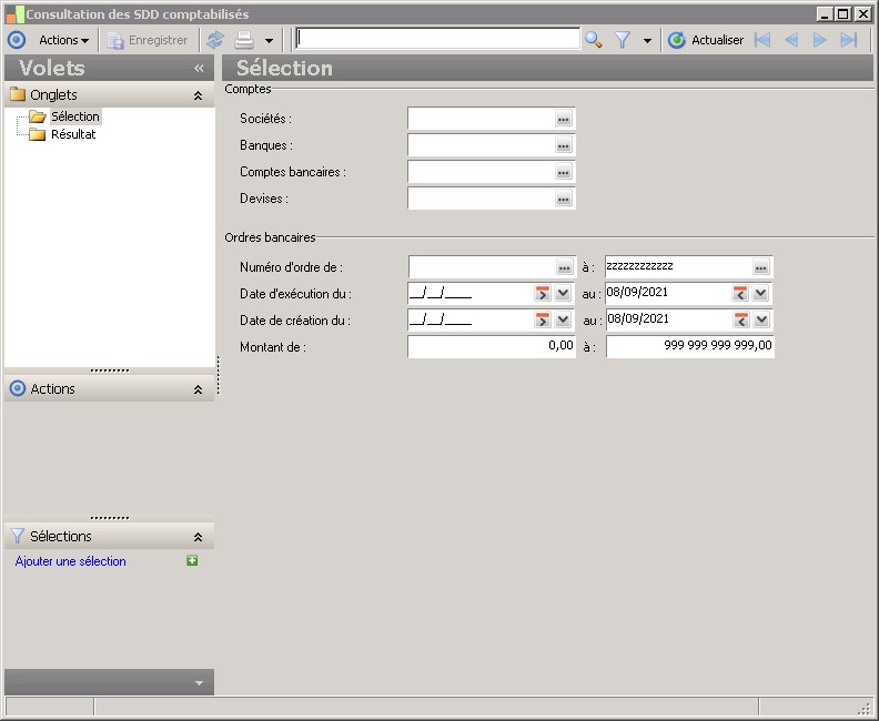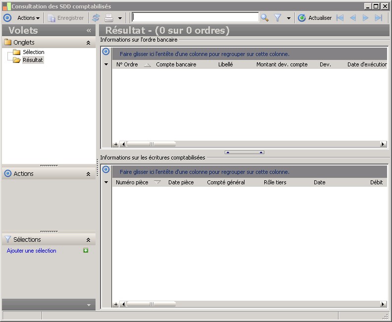 (Sage FRP 1000 Banque Paiement) Menu Banque Paiement > Comptabilisation > Consultation des SDD comptabilisés