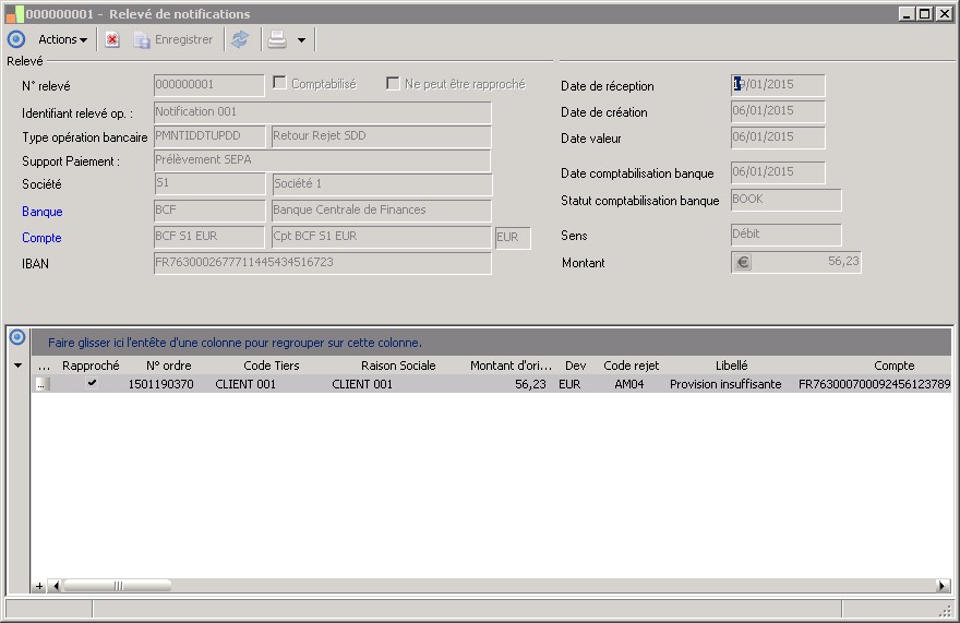 (Sage FRP 1000 Banque Paiement) Menu Banque Paiement > Relevés et Notifications > Relevés de notifications > Relevé de notifications