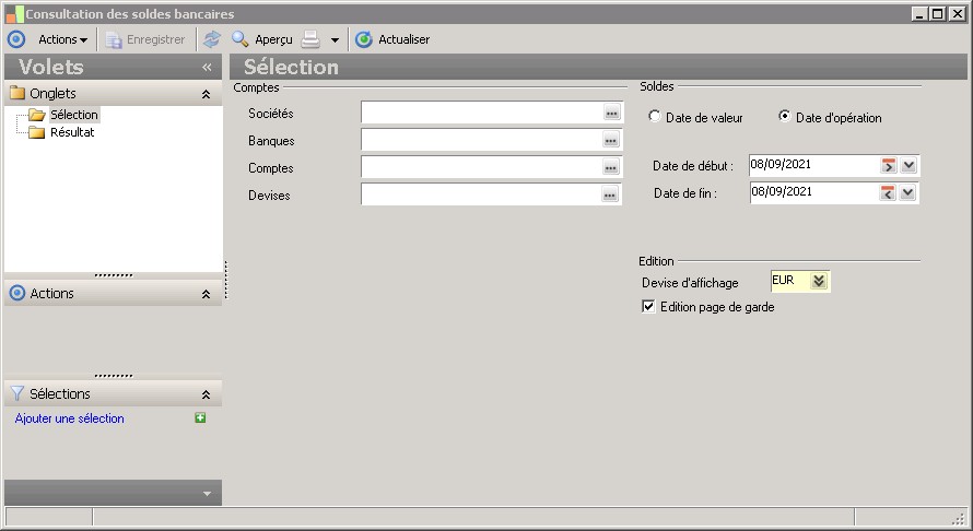 Sélectionner le type de solde souhaité, en date de valeur ou en date d'opération. |