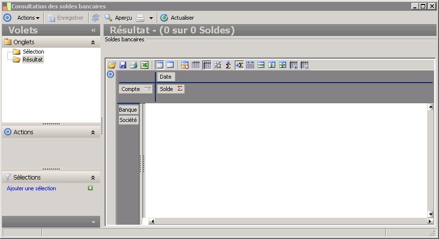 (Sage FRP 1000 Banque Paiement) Menu Banque Paiement > Relevés et Notifications > Relevés de comptes > Consultation des soldes bancaires