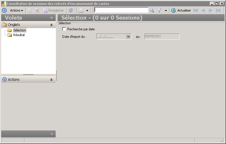 (Sage FRP 1000 Banque Paiement) Menu Banque Paiement > Relevés et Notifications > Relevés d'encaissement de cartes > Consultation de sessions des relevés d'encaissement de cartes