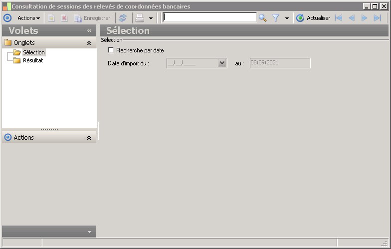 (Sage FRP 1000 Banque Paiement) Menu Banque Paiement > Relevés et Notifications > Relevés de coordonnées bancaires > Consultation de sessions des relevés de coordonnées bancaires