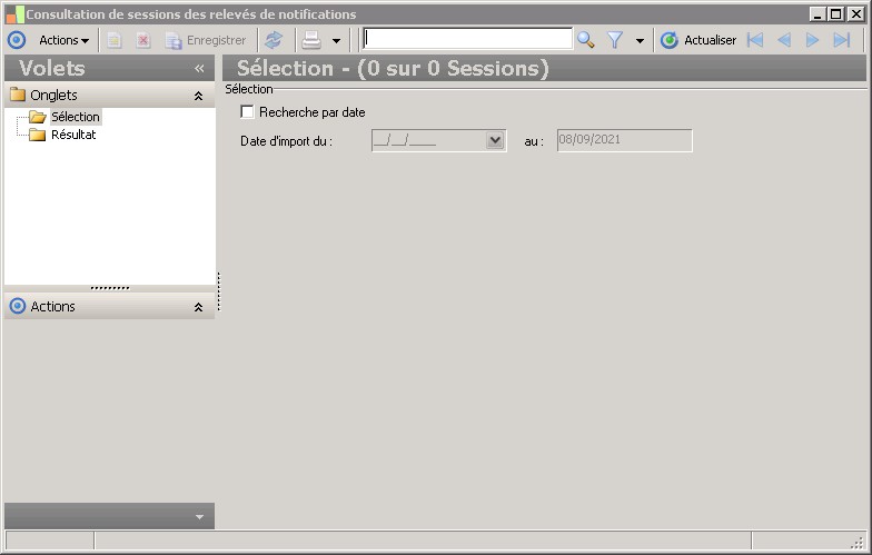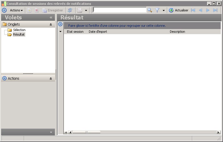 (Sage FRP 1000 Banque Paiement) Menu Banque Paiement > Relevés et Notifications > Relevés de notifications > Consultation de sessions des relevés de notifications