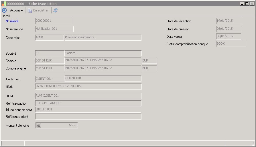 (Sage FRP 1000 Banque Paiement) Menu Banque Paiement > Relevés et Notifications > Relevés de notifications > Fiche transaction
