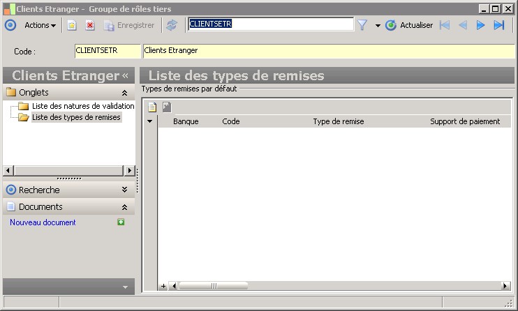 (Sage FRP 1000 Banque Paiement) Menu Banque Paiement > Paramètres > Ordres et remises bancaires > Groupe de rôles tiers