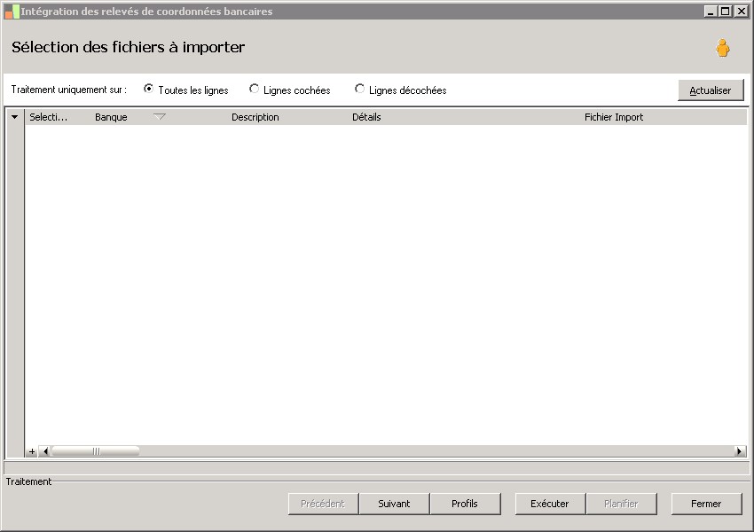 Indicateur de traitement sur plusieurs banques à partir d'un fichier unique envoyé par la banque. |