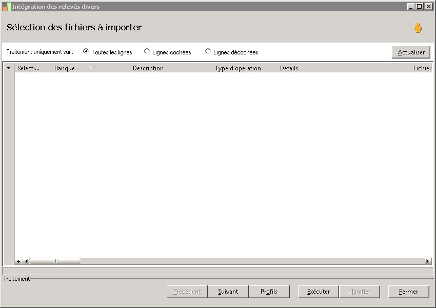 Indicateur de traitement sur plusieurs banques à partir d'un fichier unique envoyé par la banque. |