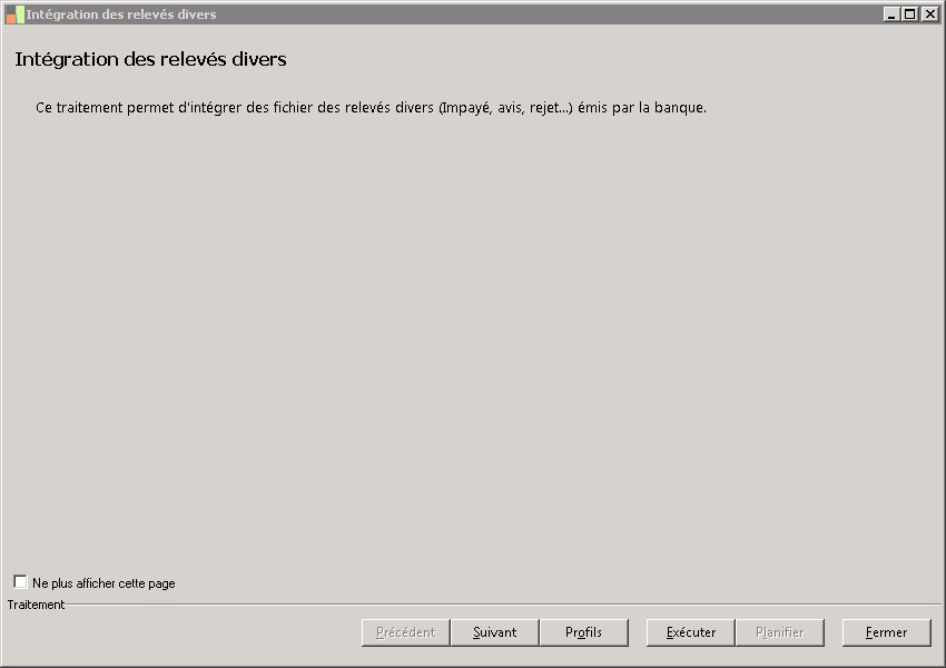 (Sage FRP 1000 Banque Paiement) Menu Banque Paiement > Relevés et Notifications > Relevés divers > Intégration des relevés divers