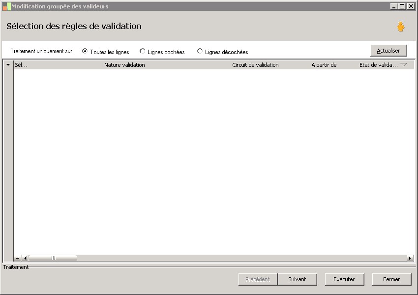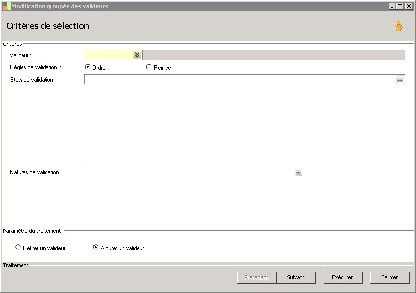 (Sage FRP 1000 Banque Paiement) Menu Banque Paiement > Paramètres > Paramètres > Modification groupée des valideurs
