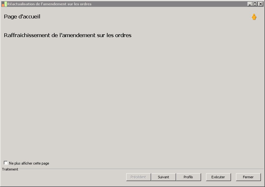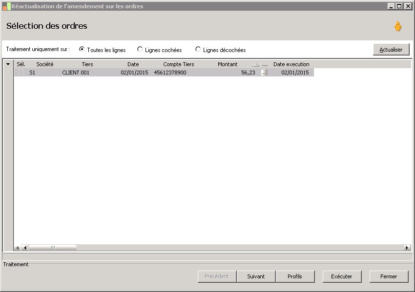 (Sage FRP 1000 Banque Paiement) Menu Banque Paiement > Paramètres > Tiers > Réactualisation de l'amendement sur les ordres