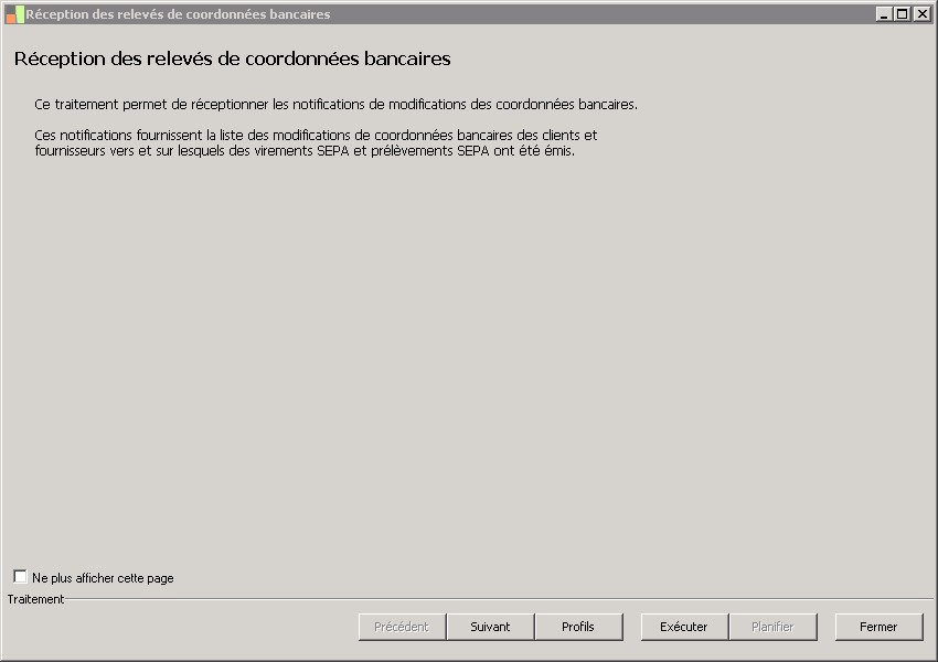 (Sage FRP 1000 Banque Paiement) Menu Banque Paiement >  Relevés et Notifications >  Relevés de coordonnées bancaires >  Réception des relevés de coordonnées bancaires