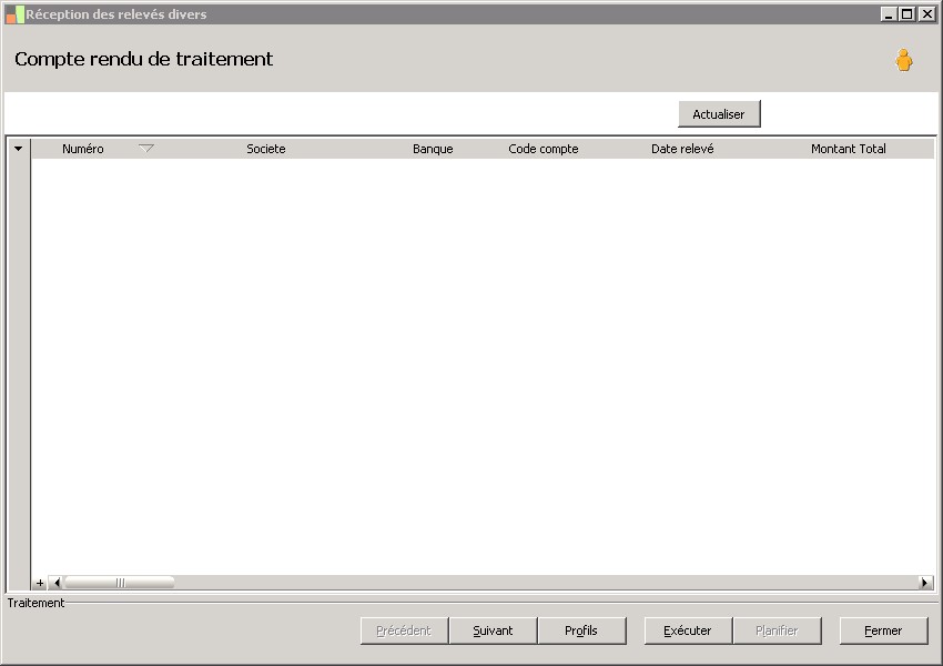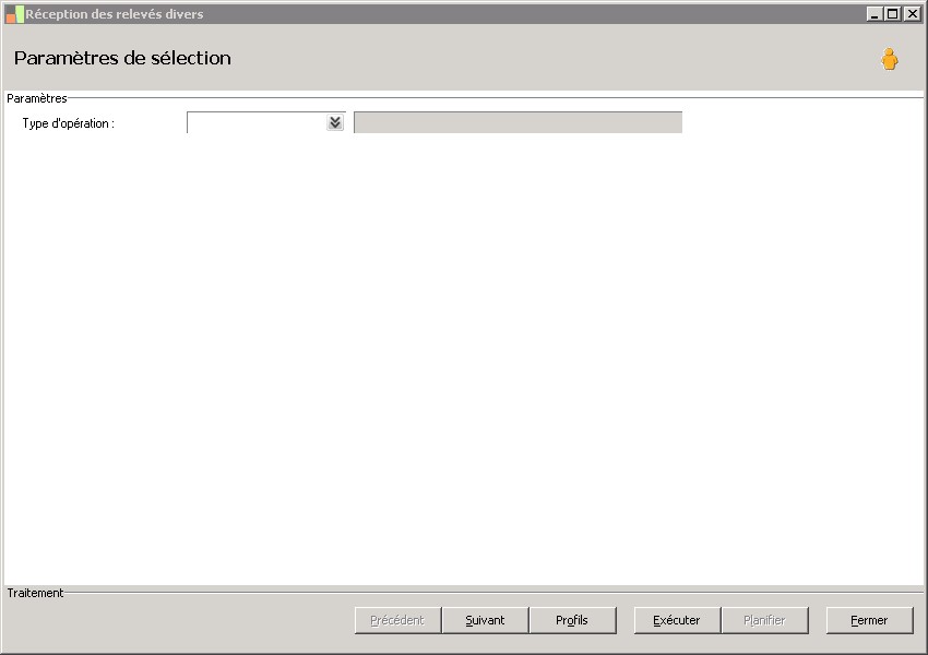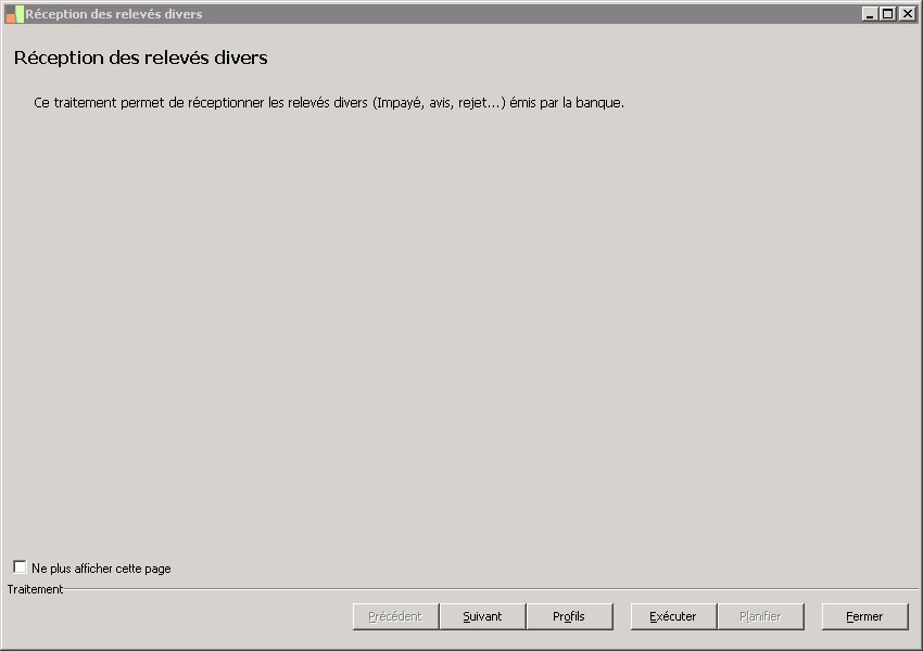 (Sage FRP 1000 Banque Paiement) Menu Banque Paiement > Relevés et Notifications > Relevés divers > Réception des relevés divers