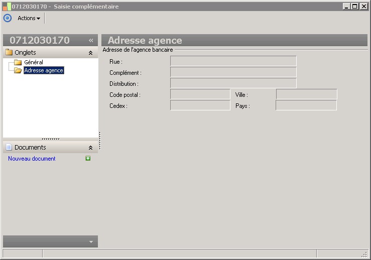 Ce champ correspond au complément d'adresse de l'agence bancaire du compte du tiers. |