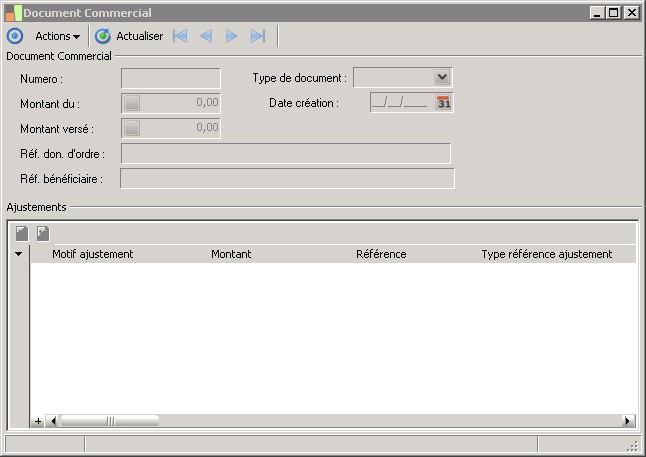 (Sage FRP 1000 Banque Paiement) Menu Banque Paiement > Ordres bancaires > Consultation des ordres par type > Document Commercial