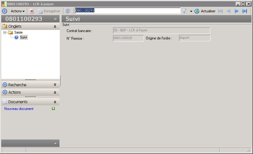 Cette information représente le numéro d'ordre de l'établissement de domiciliation de la LCR à payer.La domiciliation établit le lieu où l'effet est payable. |