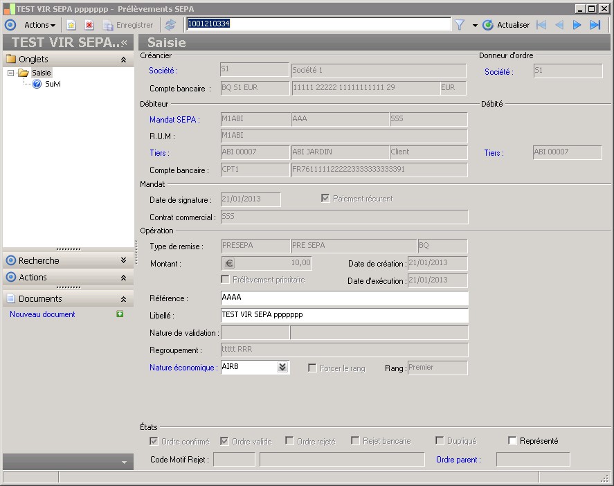 Cette zone mentionne la nature SEPA pour lequel l'ordre est passé.Le motif économique est obligatoire. |