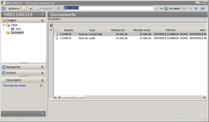 Cette zone représente la référence du document commercial pour le donneur d'ordre. |