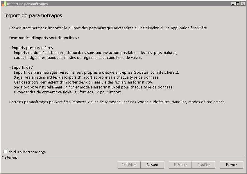 (Sage FRP 1000 Banque Paiement) Menu Banque Paiement > Initialisation > Import de paramétrages
