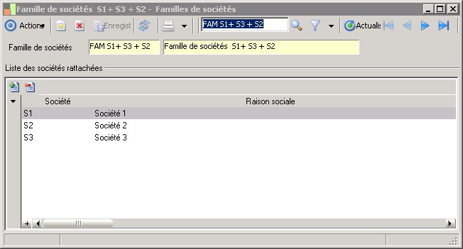 Il s'agit de l'identifiant de la famille de société.Une famille de sociétés correspond à un regroupement de sociétés du groupe. Ceci permettra d'obtenir différentes vues au niveau des éditons disponibles dans la société groupe. |