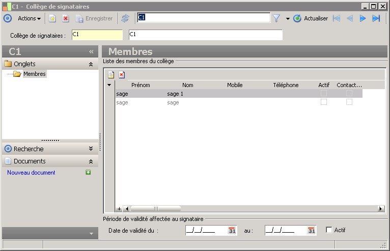 Le signataire membre du collège a des droits de validation à partir de cette date. |