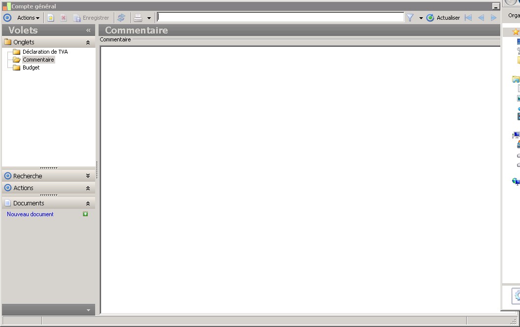 Le dossier Commentaire permet de saisir des informations libres concernant ce compte.