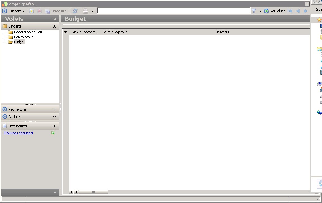 Le dossier Etats financiers permet d'associer au compte, une rubrique crédit et une rubrique débit.