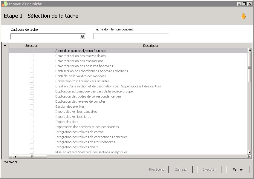 (Sage FRP 1000 Banque Paiement) Menu Banque Paiement > Outils > Création d'une tâche