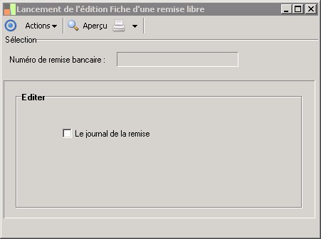 (Sage FRP 1000 Banque Paiement) Menu Banque Paiement >  Remises bancaires >  Lancement de l'édition Fiche d'une remise libre