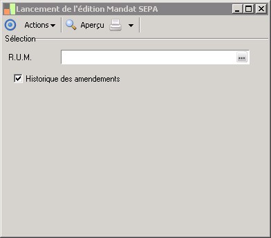 (Sage FRP 1000 Banque Paiement) Menu Banque Paiement > Paramètres > Tiers > Lancement de l'édition Mandat SEPA