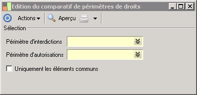 (Sage FRP 1000 Banque Paiement) Menu Banque Paiement > Paramètres > Périmètres > Edition du comparatif de périmètres de droits