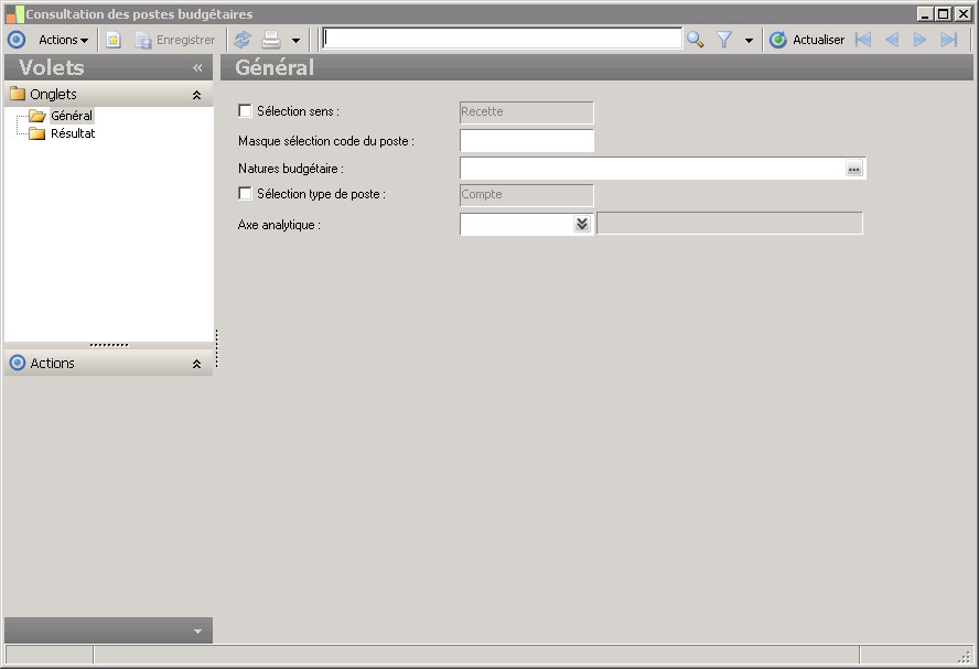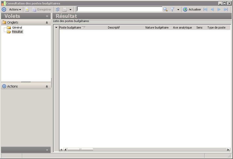 (Sage FRP 1000 Comptabilité) Menu Budget >  Paramètres >  Consultation des postes budgétaires