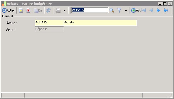 (Sage FRP 1000 Comptabilité) Menu Budget > Paramètres > Nature budgétaire