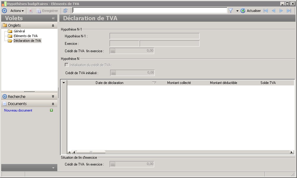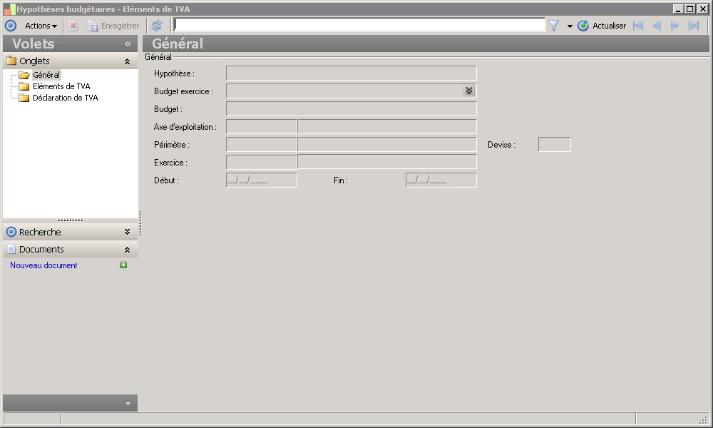 (Sage FRP 1000 Comptabilité) Menu Budget > Analyses > Hypothèses budgétaires - Eléments de TVA