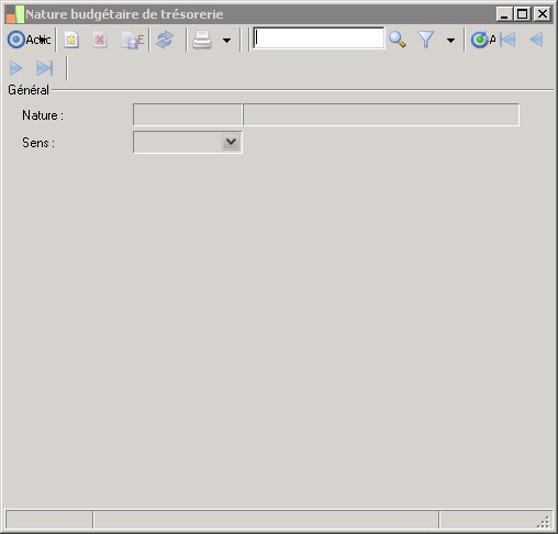 (Sage FRP 1000 Comptabilité) Menu Budget > Paramètres > Nature budgétaire de trésorerie