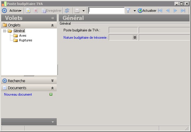 (Sage FRP 1000 Comptabilité) Menu Budget > Paramètres > Poste budgétaire TVA